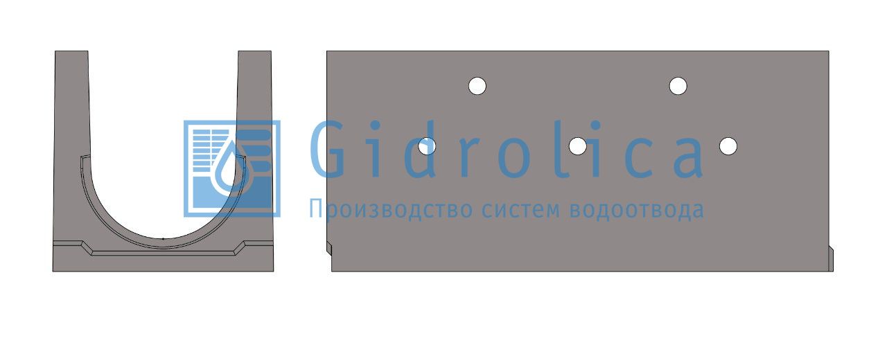 Лоток водоотводный бетонный коробчатый (СО-300мм), с дренажным отверстием слева и водосливом KUолв 100.44(30).49(42,5) - BGU в Краснодаре